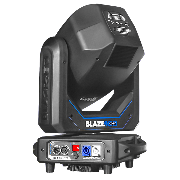 ¡Asombrosa, robusta y magnifica Blaze 400 CMY con la potencia que todos estaban esperando ¡380W!, equipada con Rueda de 14 colores vibrantes + abierto + CMY, una rueda de 17 gobos metálicos espectaculares, prisma circular y lineal y 2 efectos integrados: FROST y el clásico ARCOÍRIS lleno de color garantizado.